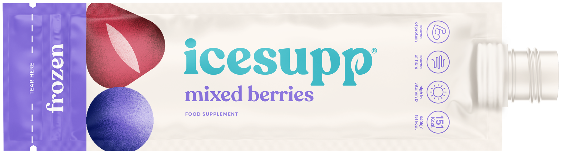 icesupp is the first nutritional supplement of its kind. Each icesupp is packed with real fruit, protein, fibre, key vitamins and minerals, plus a boost of calories. Enjoy icesupp frozen or partially defrosted - it’s 100% plant based and 100% tasty!